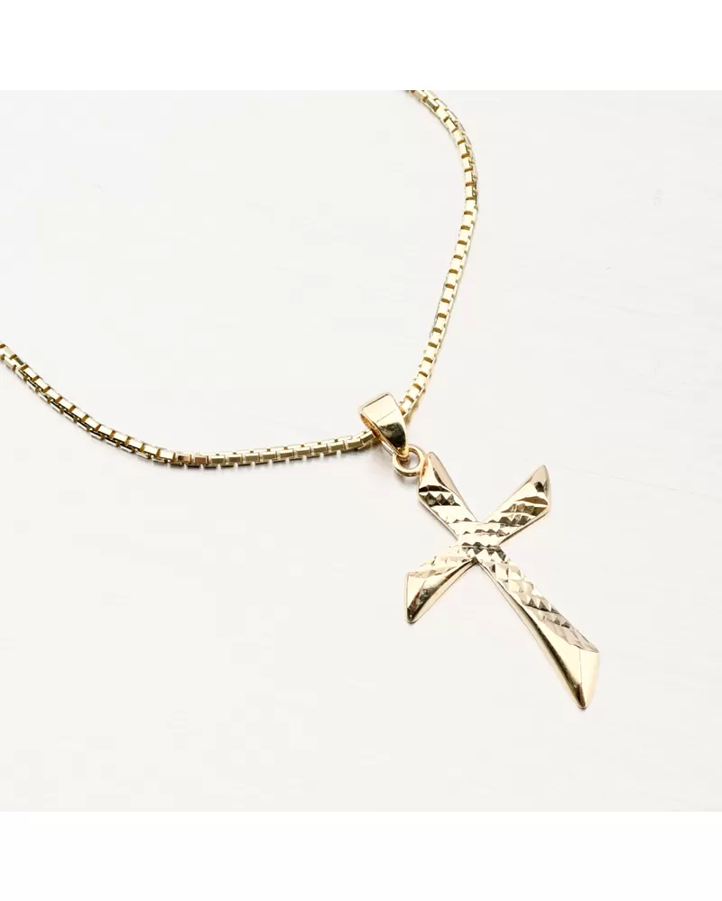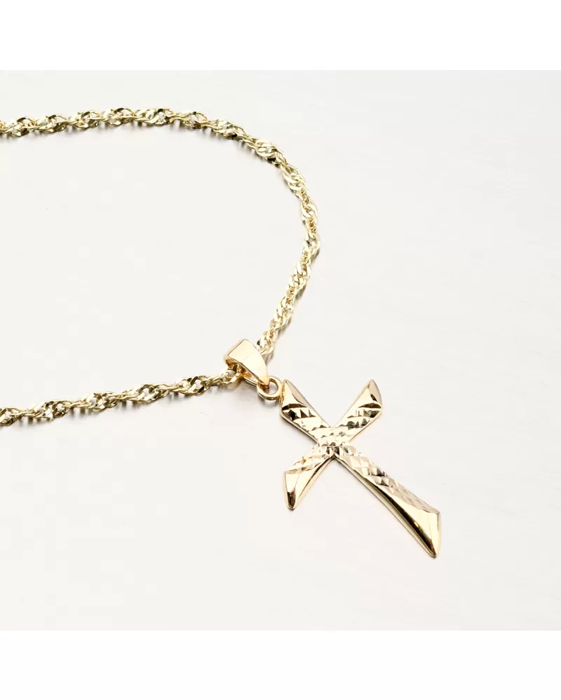 Nádherný zlatý přívěsek ve tvaru kříže zaujme svým precizním zpracováním. Z jedné strany je kříž zdobený po celé ploše facetami. Facety jsou lesklé plošky dělané za pomocí diamantového hrotu a dodávají šperku maximální lesk a brilanci ze všech úhlů. Oblíbený symbol křesťanství, který kromě duchovního významu zastává i funkci estetickou.