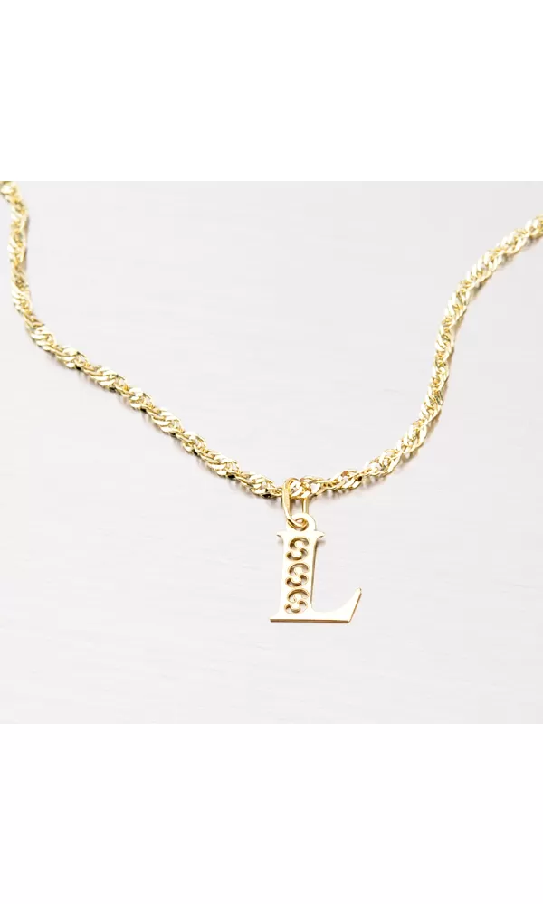 Přívěsek ve tvaru písmenka L je vyroben ze žlutého čtrnáctikarátového zlata 585/1000. Přívěsek je vyroben v lesklé povrchové úpravě s jemnými proseky… Celý popis