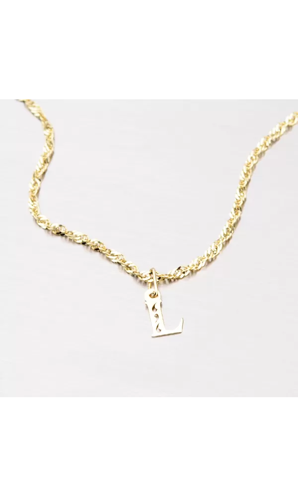 Přívěsek ve tvaru písmenka L je vyroben ze žlutého čtrnáctikarátového zlata 585/1000. Přívěsek je vyroben v lesklé povrchové úpravě s jemnými proseky ve tvaru kapky. Na doplňujících fotografiích je přívěsek vidět na řetízku: 364-0100, 44-1028 a 44-1137 nebo dále můžete vybírat v celé kategorii zlatých řetízků.