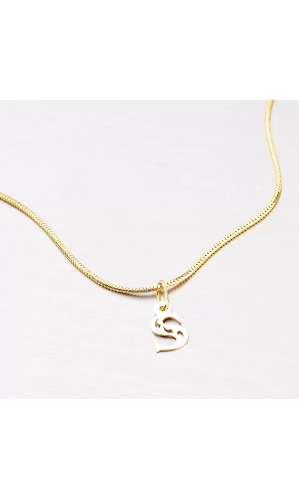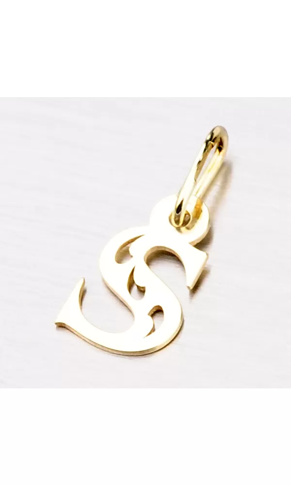 Přívěsek ve tvaru písmenka S je vyroben ze žlutého čtrnáctikarátového zlata 585/1000. Přívěsek je vyroben v lesklé povrchové úpravě s jemnými proseky ve tvaru kapky. Na doplňujících fotografiích je přívěsek vidět na řetízku: 364-0100, 44-1028 a 44-1137 nebo dále můžete vybírat v celé kategorii zlatých řetízků.