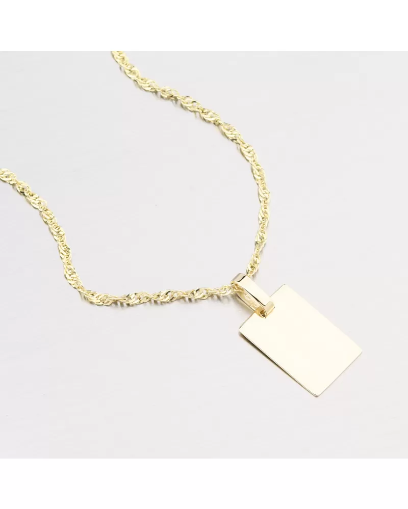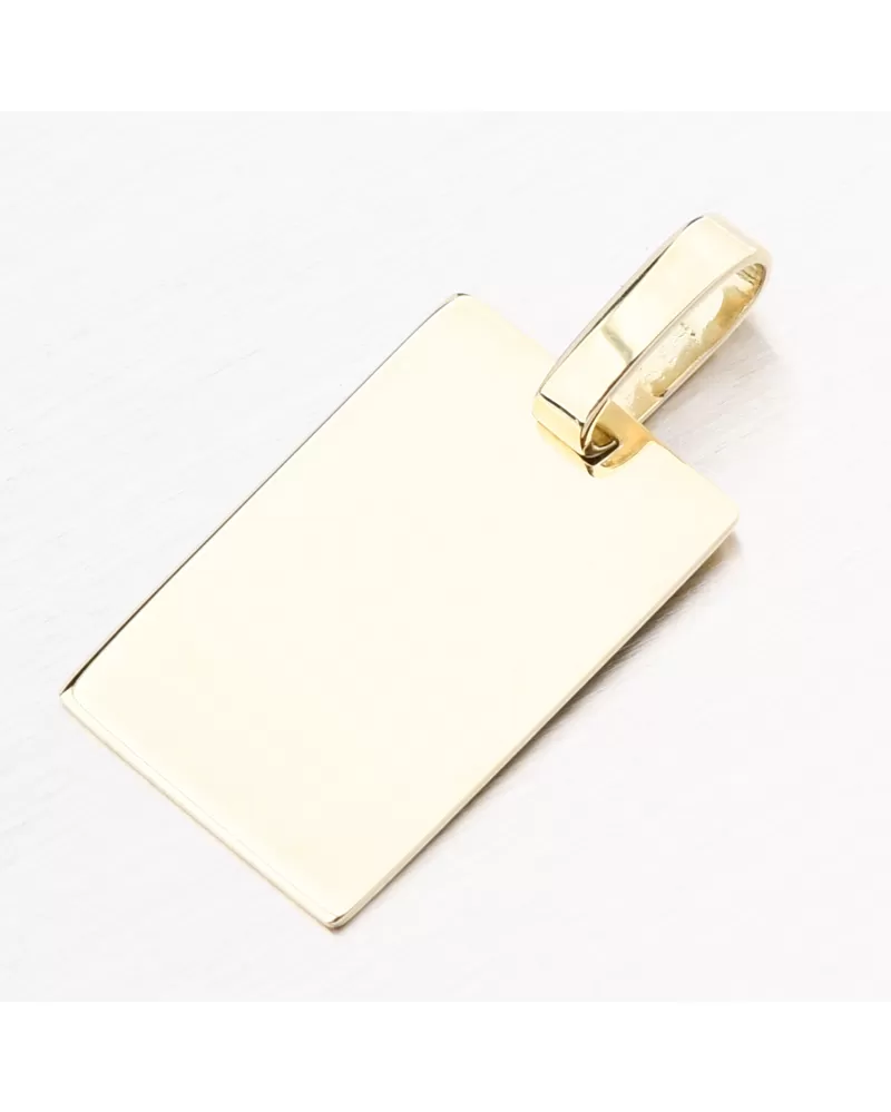 Jednoduchý zlatý přívěsek ve tvaru destičky ve vysokém lesku. Na přívěsek je možné nechat z obou stran udělat rytinu. Např. jméno, datum, věnování.… Celý popis