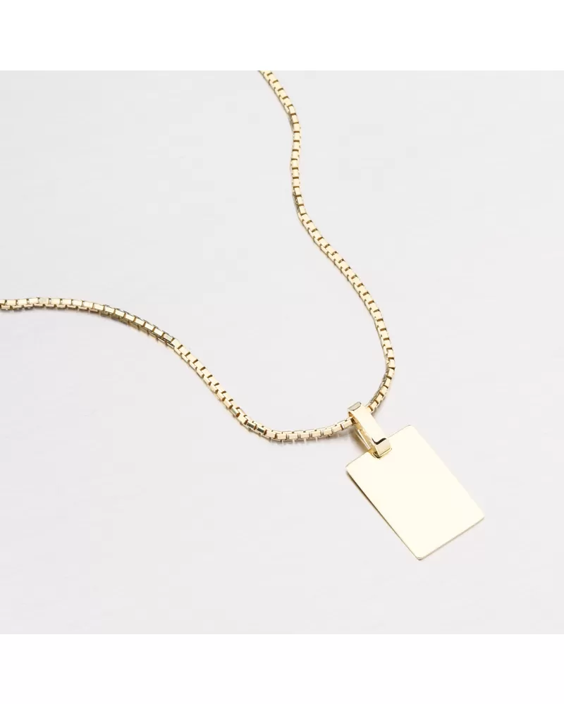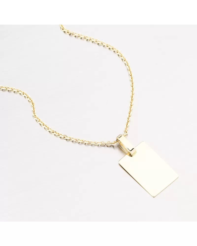 Jednoduchý zlatý přívěsek ve tvaru destičky ve vysokém lesku. Na přívěsek je možné nechat z obou stran udělat rytinu. Např. jméno, datum, věnování. Přívěsek s rytinou se hodí jako perfektní dárek pro Vaše milované. Detaily prosím uveďte do kolonky "rytina".