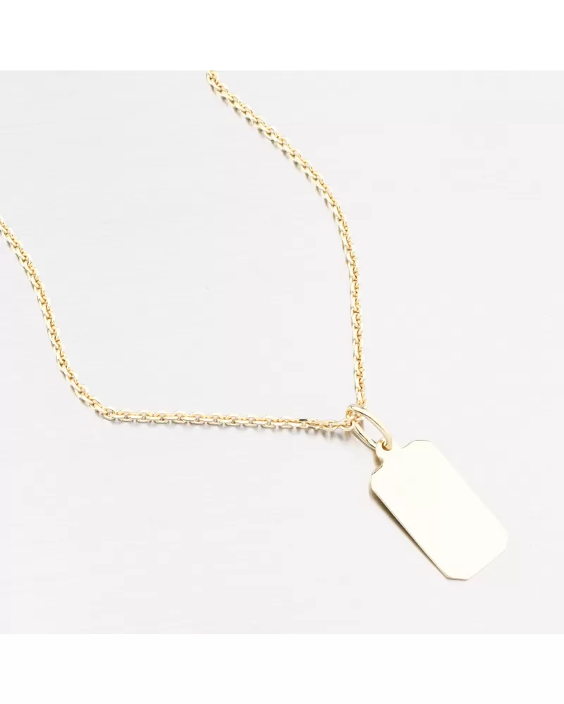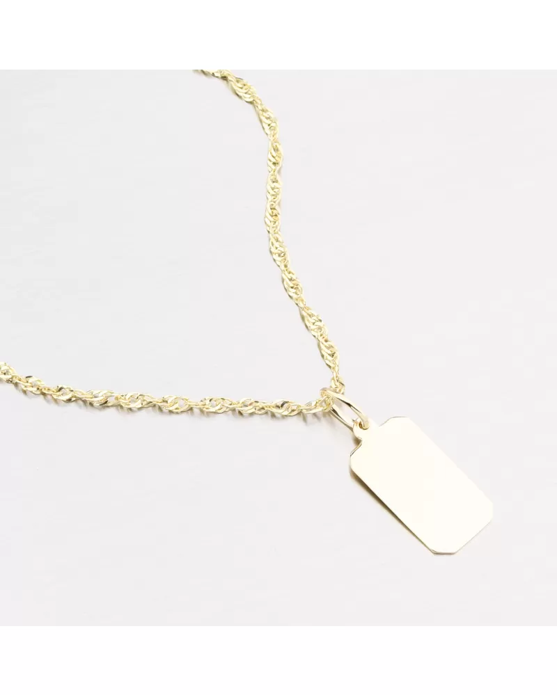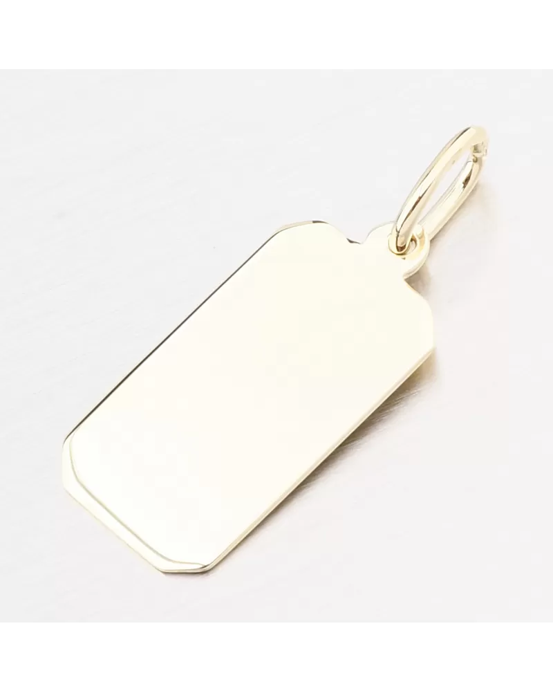 Jednoduchý zlatý přívěsek ve tvaru destičky ve vysokém lesku. Na přívěsek je možné nechat z obou stran udělat rytinu. Např. jméno, datum, věnování.… Celý popis