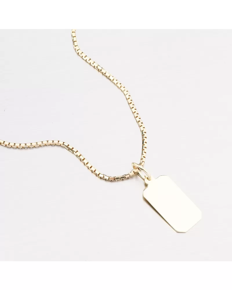 Jednoduchý zlatý přívěsek ve tvaru destičky ve vysokém lesku. Na přívěsek je možné nechat z obou stran udělat rytinu. Např. jméno, datum, věnování. Přívěsek s rytinou se hodí jako perfektní dárek pro Vaše milované. Detaily prosím uveďte do kolonky "rytina".