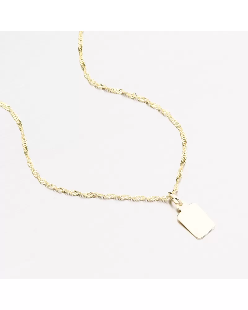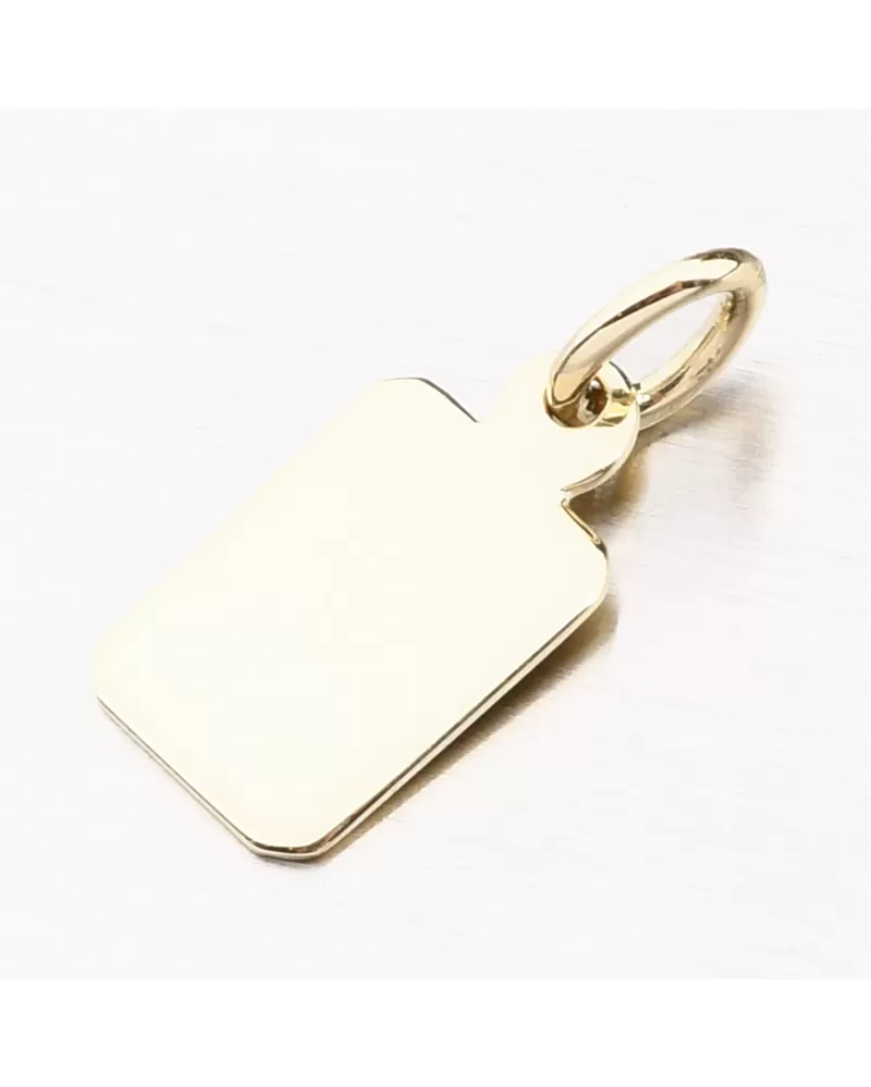 Jednoduchý zlatý přívěsek ve tvaru destičky ve vysokém lesku. Na přívěsek je možné nechat z obou stran udělat rytinu. Např. jméno, datum, věnování.… Celý popis