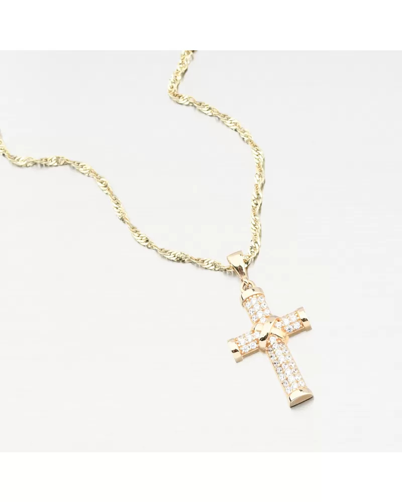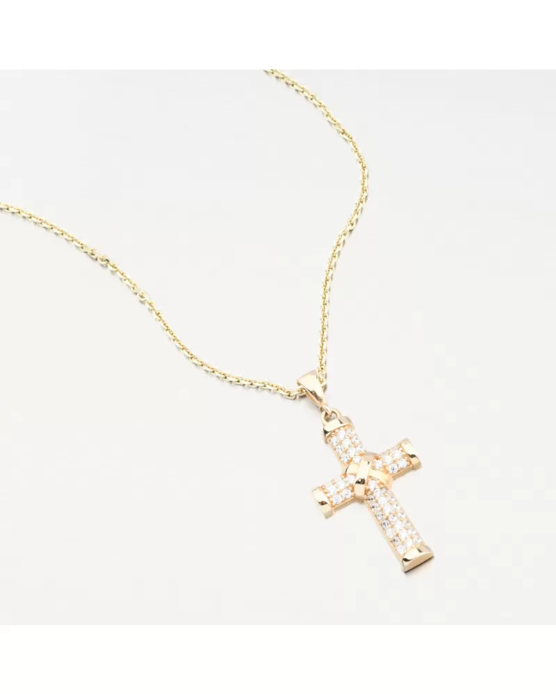 Elegantní zlatý přívěsek ve tvaru kříže osázený zářivými zirkony září noblesou a vírou. Nadčasový symbol ochrany a stylu, který zaujme na první pohled. Přívěsek působí decentně, ale nepřehlédnutelně – ideální dárek pro muže i ženy, kteří oceňují krásu s hlubším významem. Zirkony jsou briliantového brusu, který zajišťuje maximální brilanci vybroušených facet, dokonale odráží světlo a neuvěřitelně září z každého úhlu pohledu.