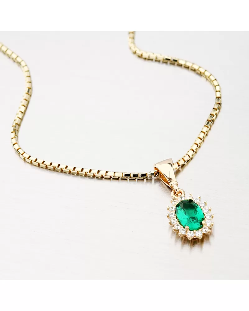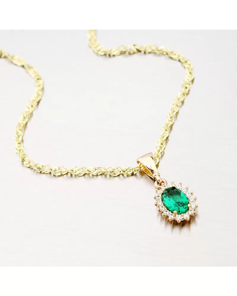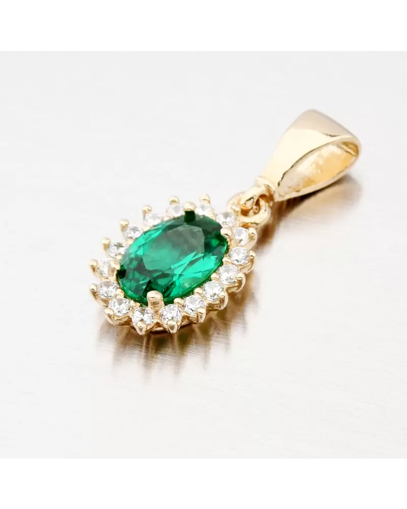 Ozdobte svůj dekolt luxusním přívěskem v oválném tvaru, který zdobí syntetický smaragd. Syntetický smaragd je pevně uchycen čtyřmi krapnami a jeho krásu doplňují zirkony v briliantovém brusu.