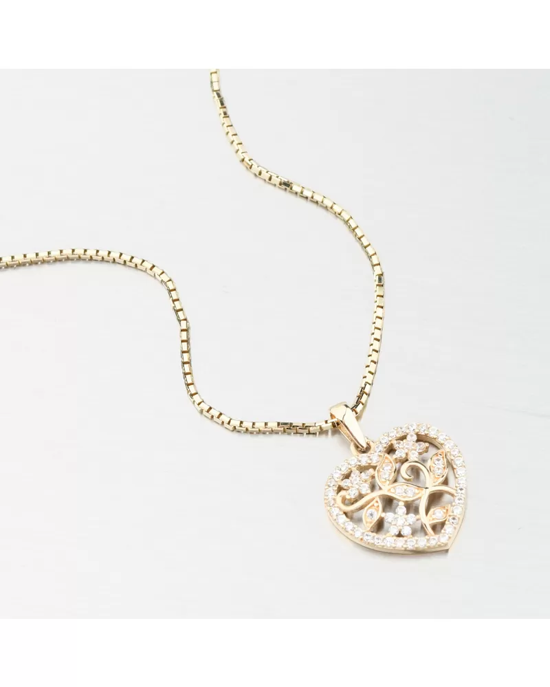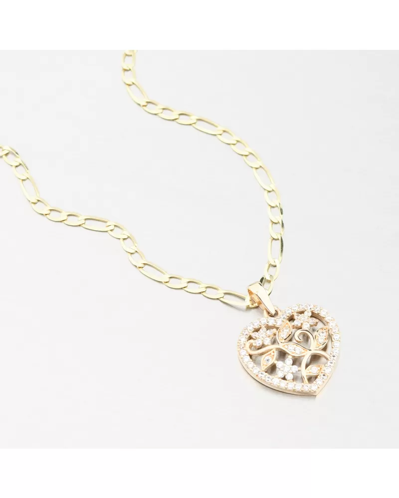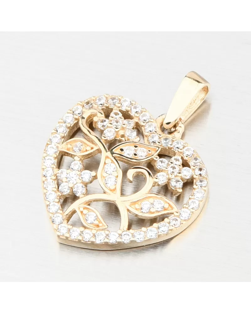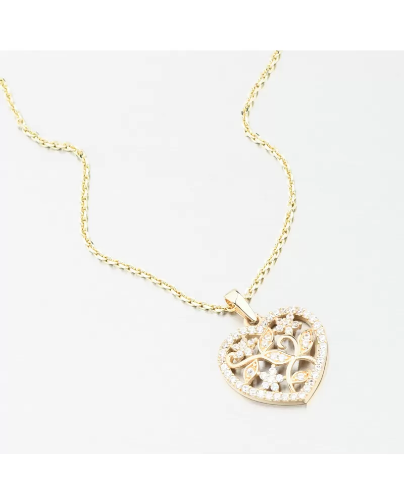 Tento nádherný zlatý přívěsek ve tvaru srdce okouzlí na první pohled svým propracovaným designem. Uvnitř jemné kontury srdce se rozvíjí decentní květinový motiv, posetý precizně broušenými zirkony, které se třpytí při každém dopadu světla. Zirkony jsou briliantového brusu, který zajišťuje maximální brilanci vybroušených facet, dokonale odráží světlo a neuvěřitelně září z každého úhlu pohledu.