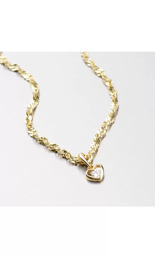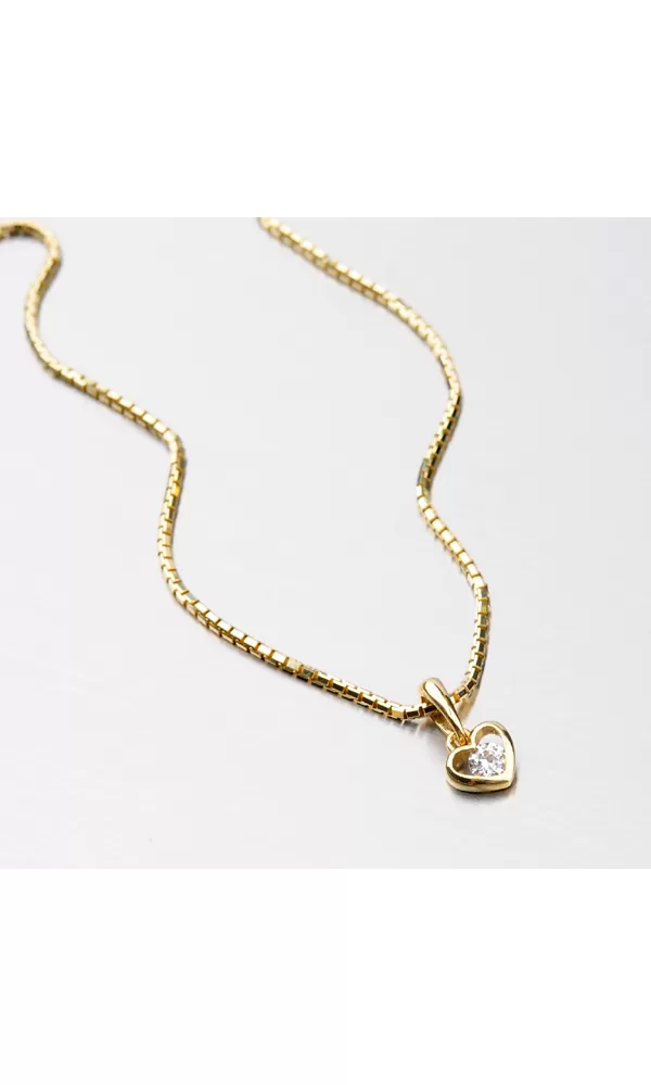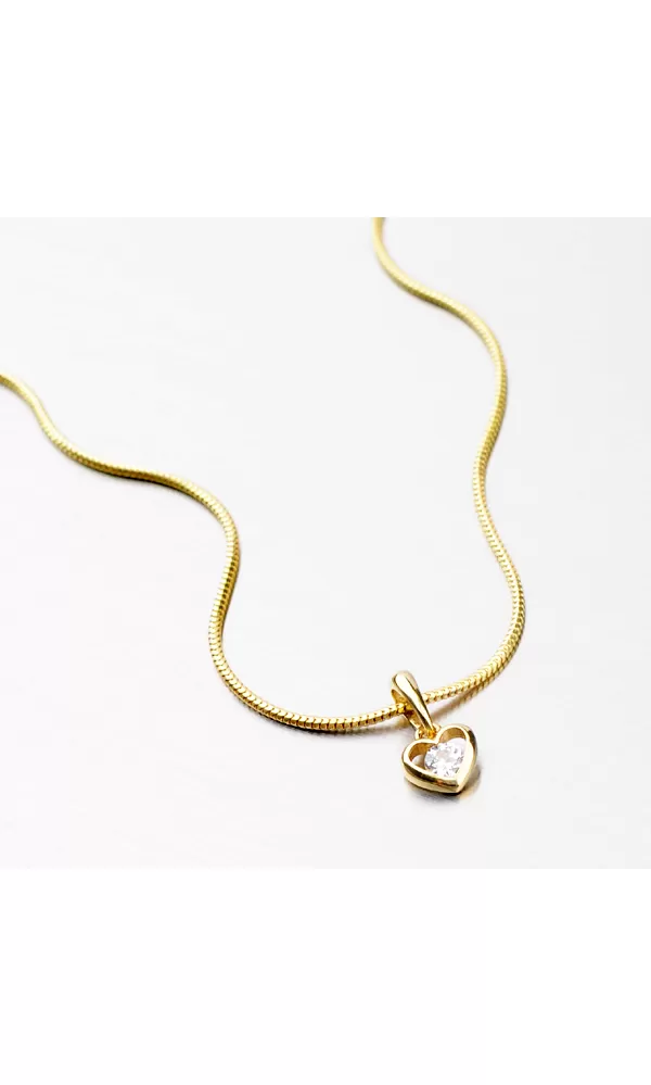 Drobné srdíčko s jedním bílým zirkonem je vyrobeno ze žlutého  čtrnácti karátového zlata o ryzosti 585/1000. Zlatý přívěsek je vyrobený v lesklé povrchové úpravě.