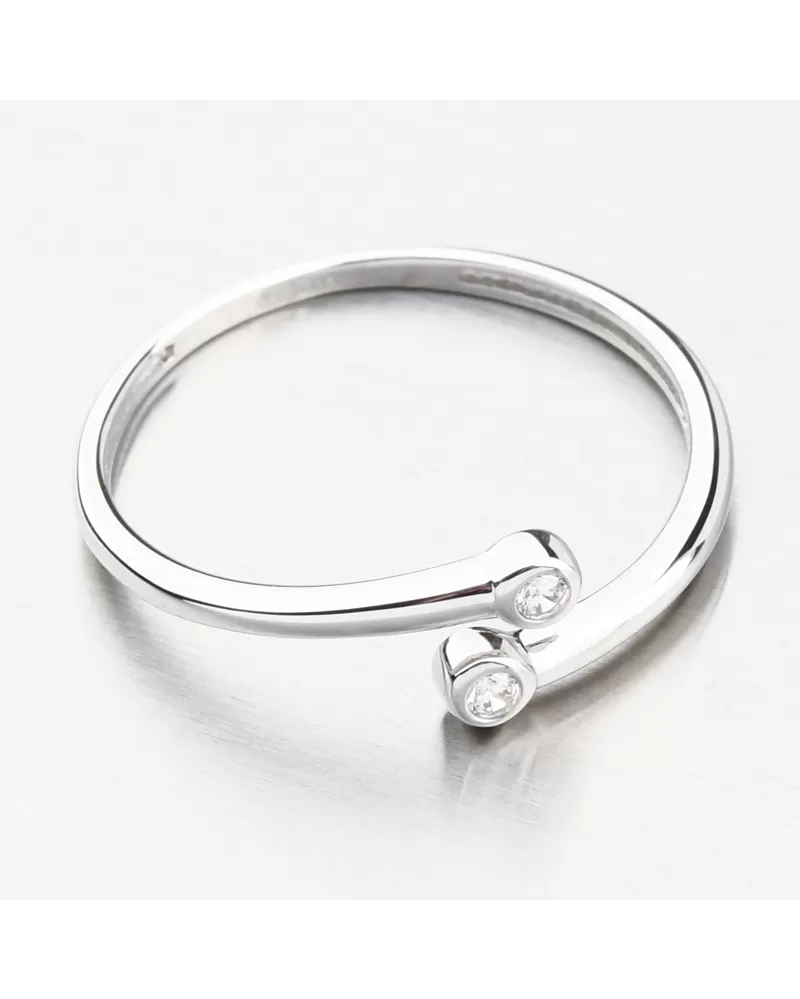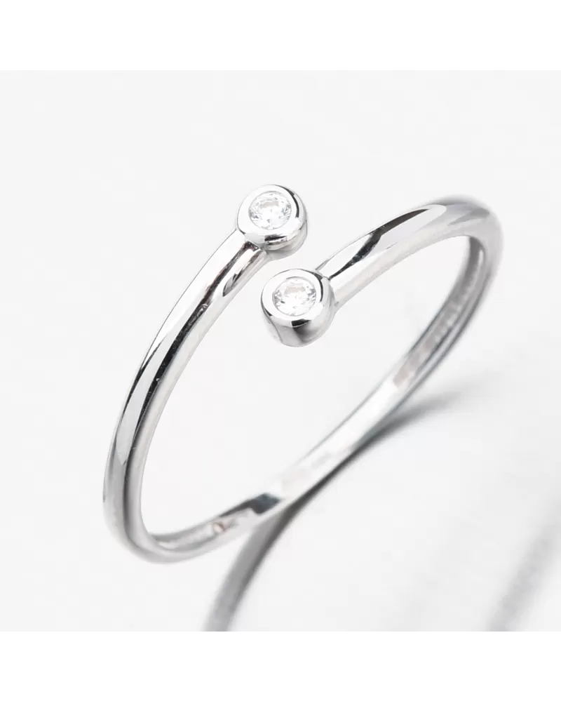 V jednoduchosti je krása, tento prsten z bílého zlata je toho dokonalým důkazem. Ozdoba decentního prstenu je rozdvojená obroučka, která je zakončena třpytivým zirkonem. Zirkony jsou briliantového brusu, který zajišťuje maximální brilanci vybroušených facet, dokonale odráží světlo a neuvěřitelně září z každého úhlu pohledu.