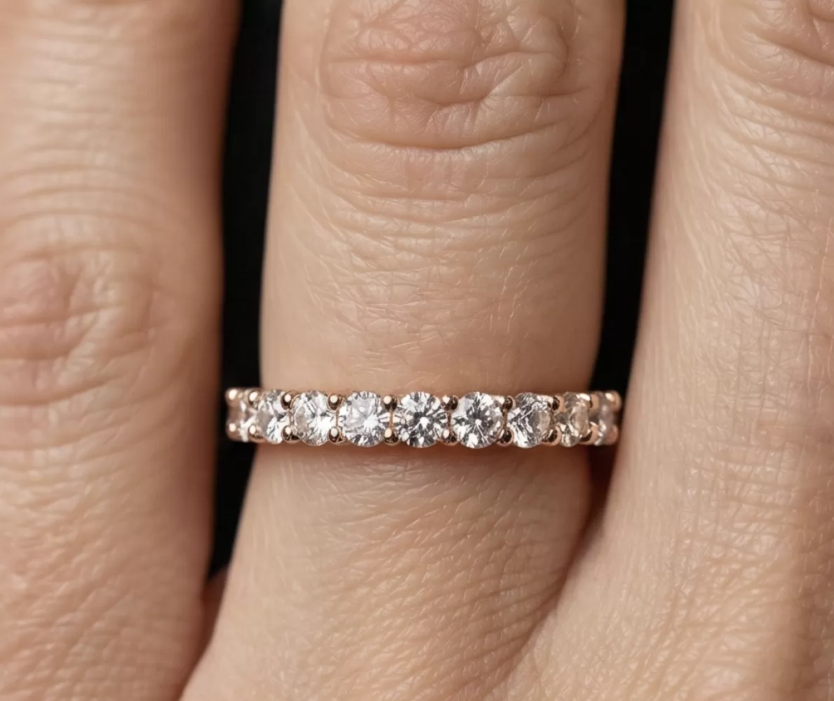 Překvapte vaší partnerku krásným prstenem s brilianty! Jemný dámský prsten vyrobený z růžového čtrnáctikarátového zlata - 585/1000 v lesklé povrchové úpravě. V prstenu je vsazeno patnáct diamantů briliantového brusu, které jsou vsazeny do jedné linie. Prsten působí velmi jemně a elegantně. Každá žena se do něho zamiluje. Prsten je možné kombinovat s jinými prsteny a nosit je současně na jednom prstu. Prsten vyrábíme a je skladem také ve žlutém zlatě.