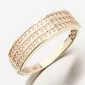 V jednoduchosti je krása, tento prsten je toho dokonalým důkazem. Zlatý prsten zdobený třpytivými zirkony ve třech řadách působí elegantně, decentně a přesto nepřehlédnutelně. Precizní osazení zirkonů vytváří jemný souvislý lesk, který rozzáří každý pohyb ruky. Zirkony jsou briliantového brusu, který zajišťuje maximální brilanci vybroušených facet, dokonale odráží světlo a neuvěřitelně září z každého úhlu pohledu.