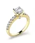 Tento luxusní prsten je vyroben ze žlutého čtrnáctikarátového zlata - 585/1000 v lesklé povrchové úpravě. Prsten má jeden hlavní dominantní diamant kulatého briliantového brusu, který je uchycený do čtyřkrapnové korunky. Toto uchycení nechá diamant dokonale vyniknout jeho kráse a brusu. Krásným detailem je vsazení diamantů i na boku korunky. Po stranách v obroučce prstenu je vsazeno na každé straně 6 zářivých diamantů, které prsten zjemňují. Prsten ohromí z každé strany. Všechny diamanty mají briliantový brus, který zajišťuje maximální brilanci vybroušených facet, dokonale odráží světlo a neuvěřitelné září z každého úhlu pohledu! Díky skladbě a stylově čistému vsazení zirkonů, vyniká prsten krásnou brilancí kamenů. Vsazování diamantů do prstenů provádějí naši nejzkušenější mistři zlatníci ručně pod mikroskopem s přesností na 0,01mm a proto nehrozí vypadnutí kamínků jako to bývá u strojně vyráběných prstenů.