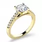 Luxusní prsten je vyroben ze žlutého čtrnáctikarátového zlata - 585/1000 v lesklé povrchové úpravě. Prsten má jeden hlavní dominantní diamant kulatého briliantového brusu, který je uchycený do čtyřkrapnové korunky. Toto uchycení nechá diamant dokonale vyniknout v jeho kráse a brusu. Po stranách v obroučce prstenu je vsazeno na každé straně 7 zářivých diamantů, které prsten zjemňují. Všechny diamanty mají briliantový brus, který zajišťuje maximální brilanci vybroušených facet, dokonale odráží světlo a neuvěřitelné září z každého úhlu pohledu!