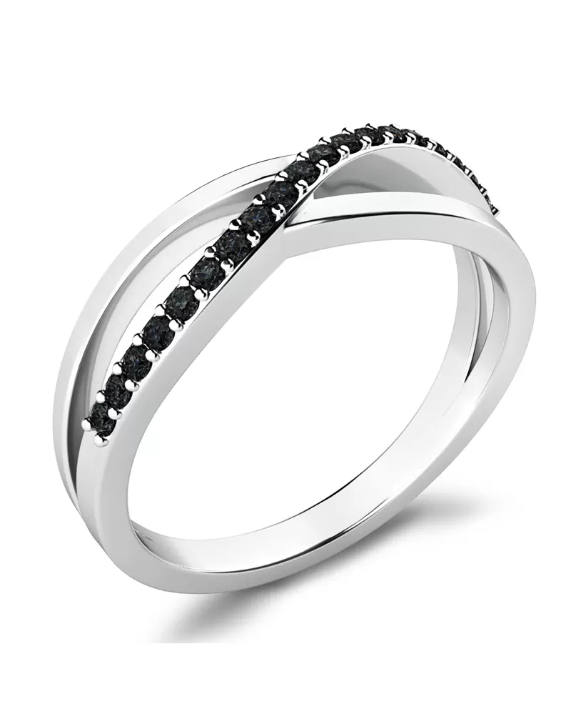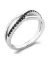 Prsten jednoduchého designu, kde propletená ozdoba plynule přechází v obroučku prstenu. Prsten je vyroben z bílého čtrnácti karátového zlata - 585/1000 v lesklé povrchové úpravě. V prstenu je vsazeno devatenáct kulatých diamantů černé barvy vybroušených kulatým briliantovým brusem. Vsazování diamantů provádějí naši nejzkušenější mistři zlatníci ručně pod mikroskopem s přesností na 0,01mm a proto nehrozí vypadnutí kamínků jako to bývá u strojně vyráběných prstenů.