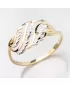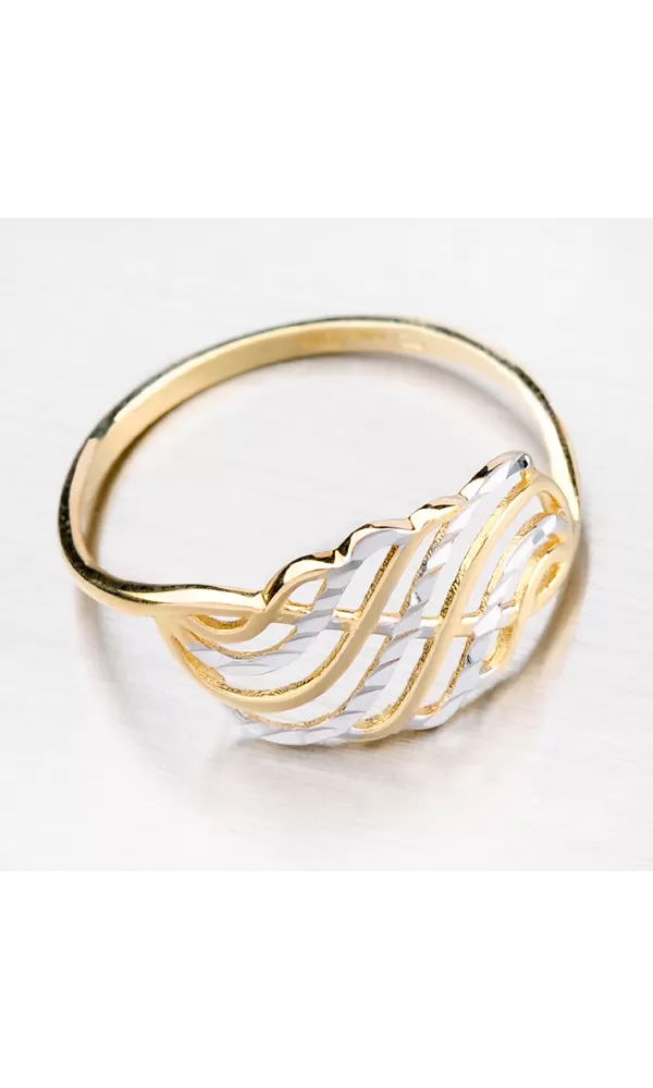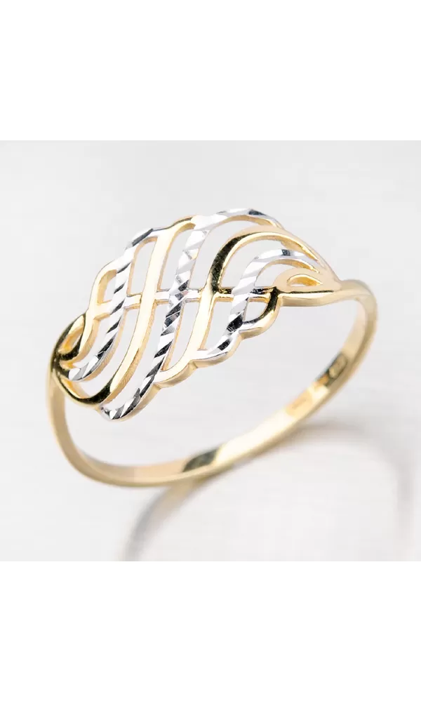 Hledáte jednoduchý ale elegantní prsten, který zaujme všechny ve vašem okolí? Přesně pro vás tu máme tento prsten, který je vyroben ze žlutého čtrnácti karátového zlata o ryzosti 585/1000 v kombinaci bílé a žluté barvy. Tento prsten vás zaujme svými propletenými esíčky, které se střídají v barvě i v povrchu. Bílá esíčka jsou zdobena povrchovým gravírováním, které zaujme každého ve vašem okolí.