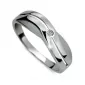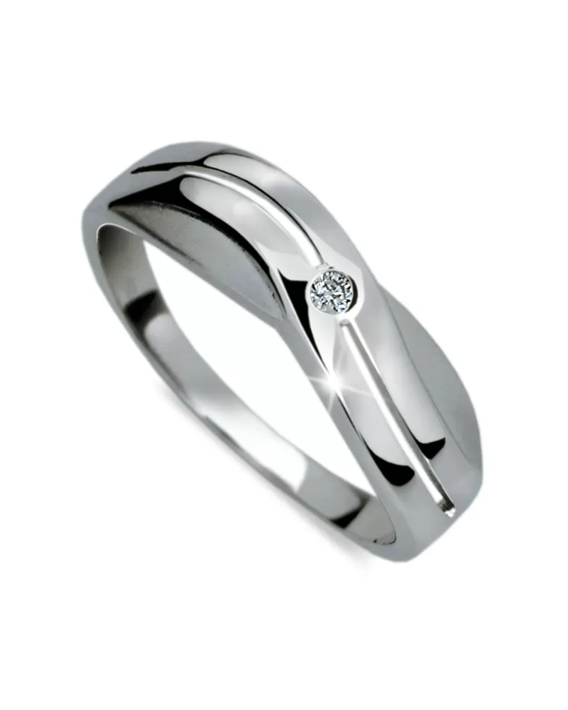 Dámský prsten s jedním bílým zirkonem je vyrobený z bílého čtrnácti karátového zlata 585/1000.  Prsten je vyroben v kombinaci lesklé a matné povrchové úpravě.