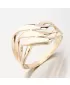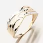 Velmi zajímavý a precizně zpracovaný zlatý dámský prsten. Prsten je složen z jednotlivých propletených linií, které se od sebe liší barvou zlata a povrchovou úpravou - gravírováním. Dvě linie jsou v bílé barvě zlata a je zvýrazněné gravírováním. Gravírování je za pomocí diamantového hrotu a dodávají šperku maximální lesk a brilanci ze všech úhlů. Zbylé části a linie jsou ve žlutém zlatu ve vysokém lesku.