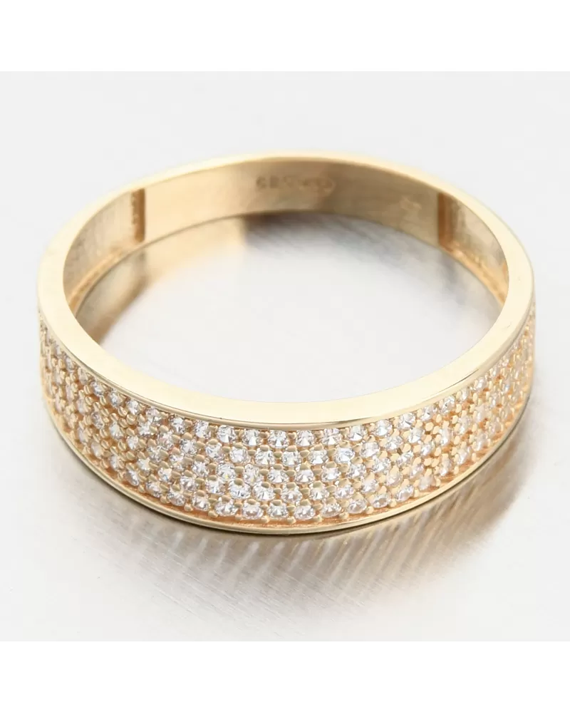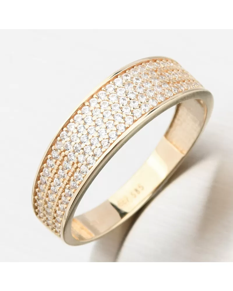 V jednoduchosti je krása, tento prsten je toho dokonalým důkazem. Zlatý prsten zdobený třpytivými zirkony v několika řadách působí elegantně, decentně a přesto nepřehlédnutelně. Precizní osazení zirkonů vytváří jemný souvislý lesk, který rozzáří každý pohyb ruky. Zirkony jsou briliantového brusu, který zajišťuje maximální brilanci vybroušených facet, dokonale odráží světlo a neuvěřitelně září z každého úhlu pohledu.
