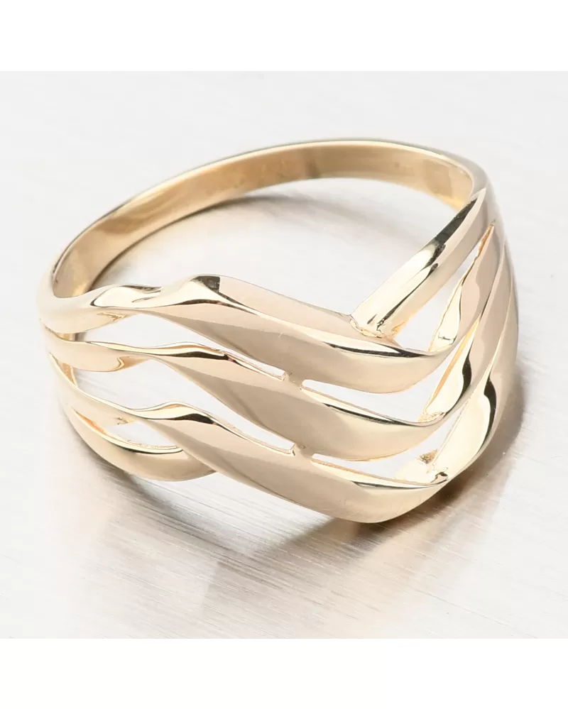 Výrazný zlatý prsten, který jen tak na ruce nepřehlédnete. Precizně zdobená přední ozdoba z propletených linií, které jsou ve vysokém lesku.