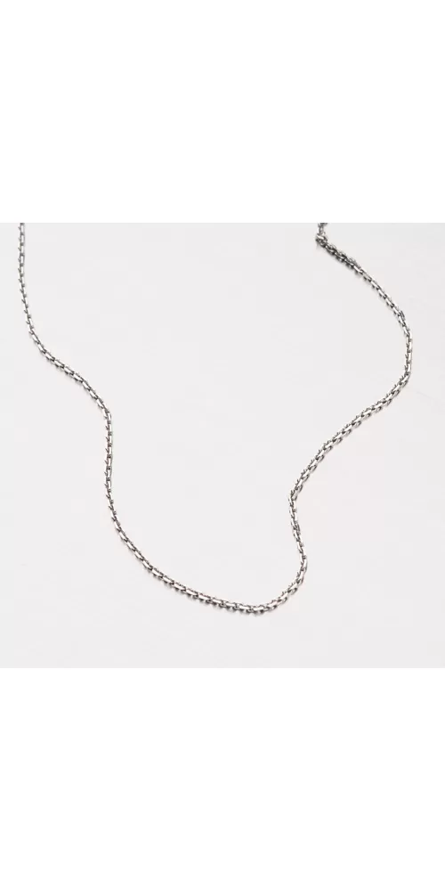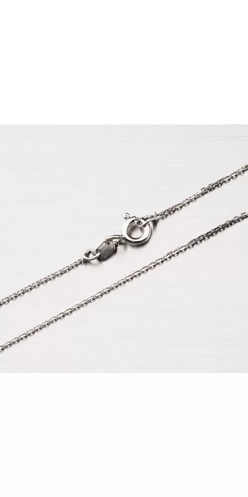 Jemný řetízek typu Anker je vyroben ze stříbrna ryzosti 925/1000 v lesklé povrchové úpravě se zapínáním na pérový kroužek a je upraven rhodiovaním. Řetízek je broušený diamantovým hrotem, který dodává řetízku maximální lesk. Rhodium je ušlechtilý drahý kov ze skupiny platinových kovů. Rhodiováním stříbrných šperků galvanickým nanášením tohoto drahého kovu se stává povrch šperku tvrdší, stálejší a odolnější vůči vnějším vlivům jako je mechanický otěr, poškrábání, nabíhání stříbra, lidský pot, kosmetické přípravky a další. Rhodium je antialergické.